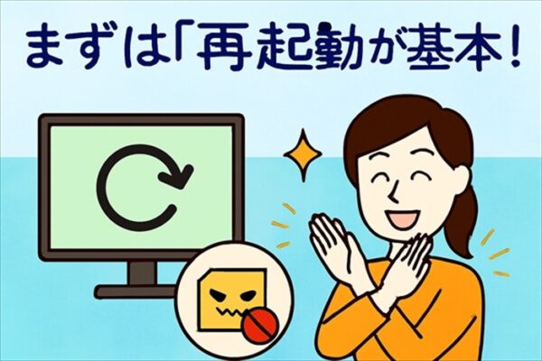 一時的な通信エラーや設定の不整合は、再起動で改善することが多いです。