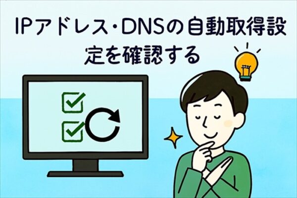 再接続が不可の場合、DNSやIPの設定を見直します。