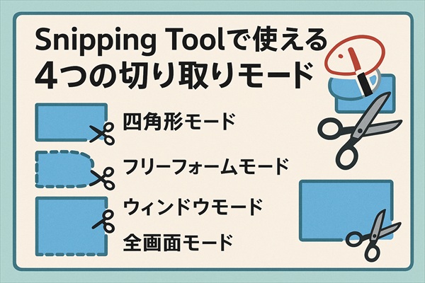 Snipping Toolには切り取り方を選べるモードが用意されています。用途に応じて使い分けると非常に便利です。
