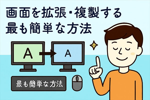 画面を「拡張」すれば広いデスクトップとして使え、「複製」すれば同じ画面を複数のモニターに表示できます。